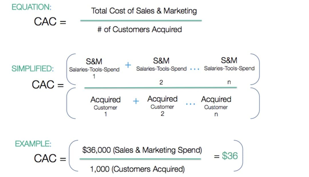 たとえば、Profittool社の式から引用したように、1,000人の顧客を獲得するために$36,000を費やした場合、CACは単純に$36になります。CAC =(36,000ドル)÷(1000顧客)= 1顧客あたり$36