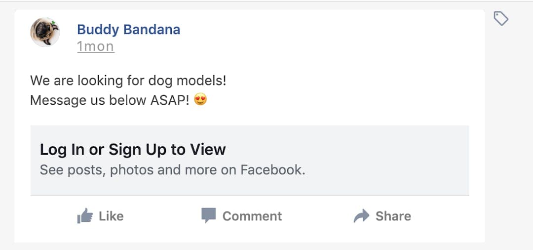 ペットのアクセサリーであるバンダナを販売するオンラインショップがFacebookとInstagramを通してキャンペーンを行なっています。キャンペーン内容はUGCを集めたり、上記のようにユーザーから有益な情報を集めることと引き換えに、ユーザーに商品を提供したりしています。