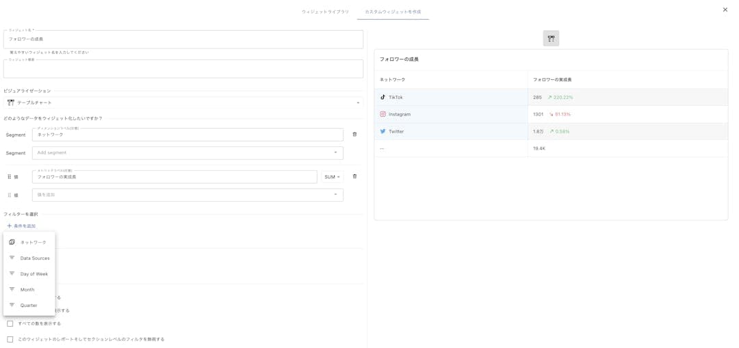 フォロワーの成長に対して、増えたフォロワー、減ったフォロワーを瞬間的に可視化するためにメトリクスを3つ並べました。この分析機能は、のちの項目で役に立ちます。