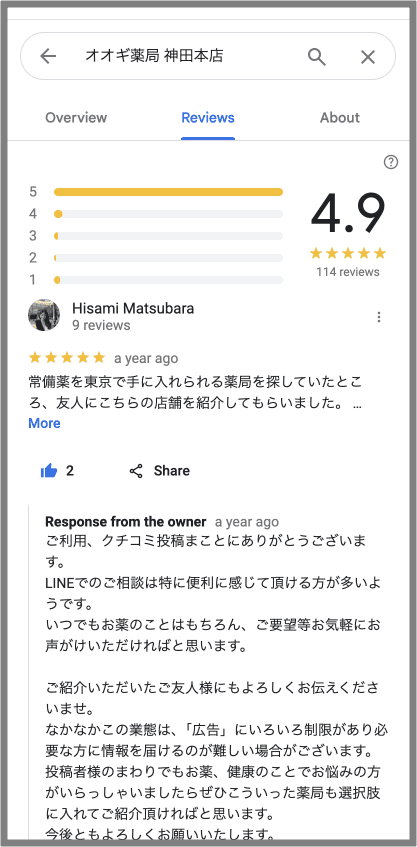 口コミ管理: すべての拠点の口コミを一箇所で確認し、返信することができます。これにより、顧客とのコミュニケーションを効率的に行えます。