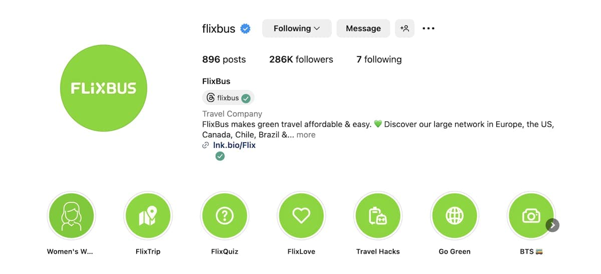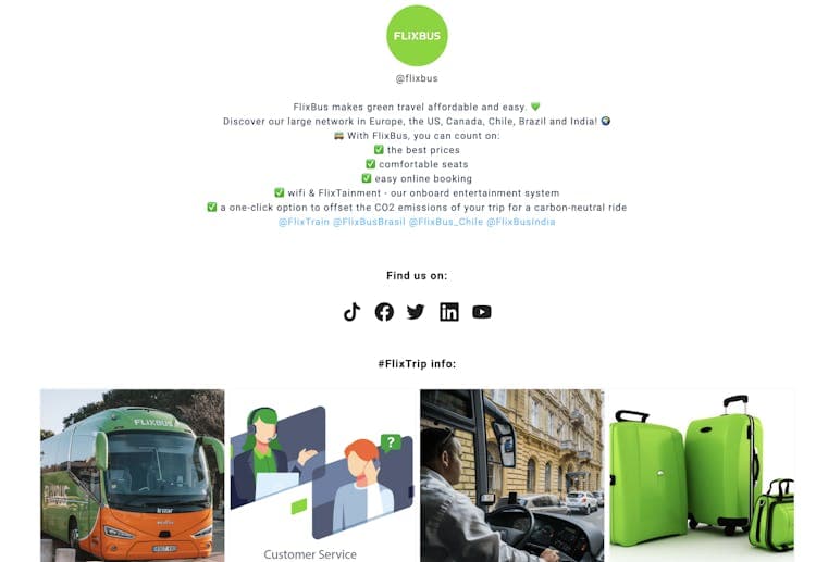 下記は、世界最大の高速長距離バス会社Flix BusのInstagramページです。