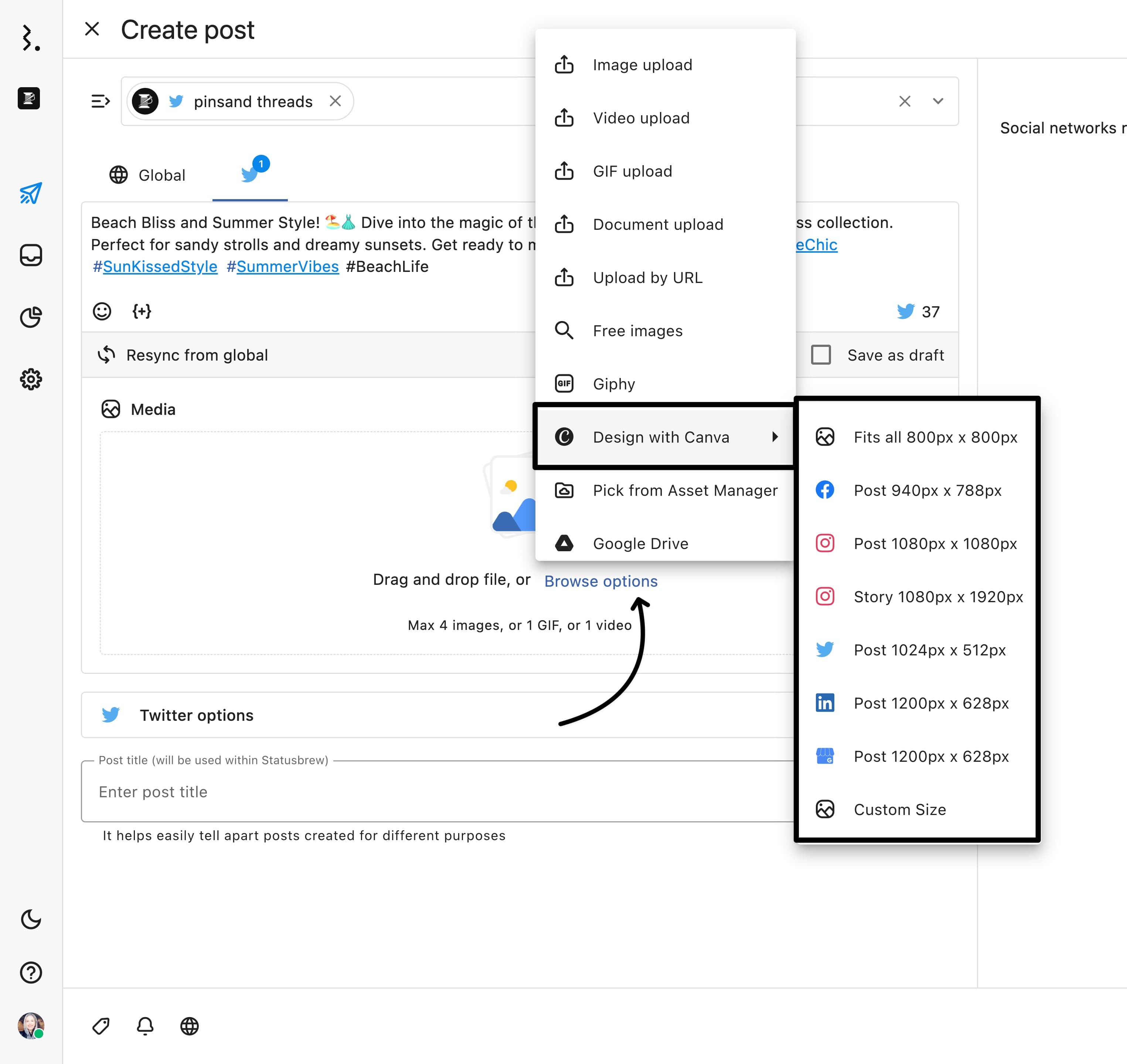 StatusbrewでCanvaを使って作成したメディアは、Statusbrew画像エディタを使って編集できます。