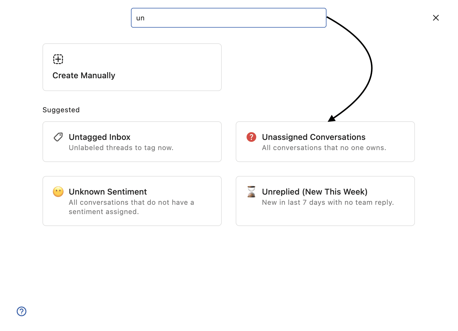 ヒント:手動で作成する代わりに、あらかじめ設定済みのテンプレート(未割り当て会話)を利用してビューを作成する方法もあります。テンプレートには必要なフィルターがあらかじめ入力されているため、時間の節約になります。必要な編集だけ行い、素早くビューを作成できます。