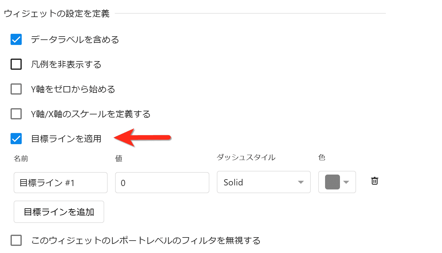 ウィジェットの設定により、"目標ラインを適用"が利用できない場合があります。