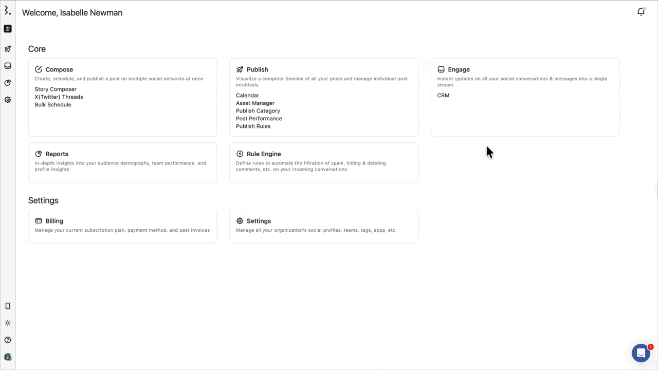 はい。エンゲージは統合された受信トレイです。接続されているすべてのプロフィールからのコメント、ダイレクトメッセージ、メンション、広告コメント、レビューがすべて一箇所に表示されます。会話の種類でフィルタリングして、特定のメッセージタイプに絞り込むこともできます。
