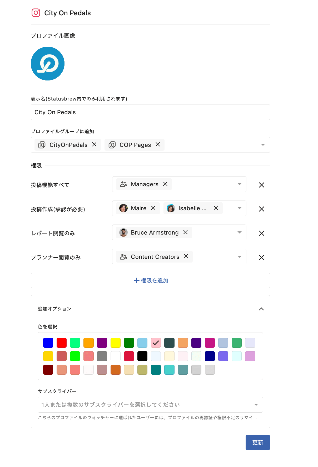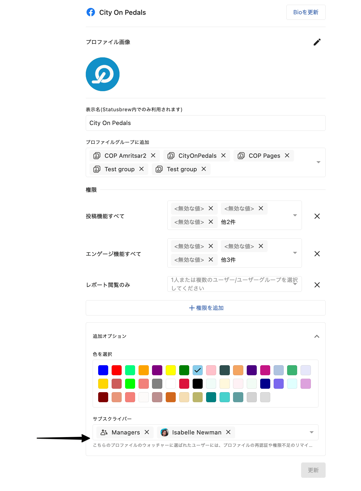 Statusbrewのプロファイルとプロファイルグループのウォッチャーとしてユーザー/ユーザーグループを追加することを選択できるようになりました。ウォッチャーは、再認証や権限不足などに関連する、あなたがサブスクライブしているプロファイル/プロファイルグループのすべての変更について通知されます。