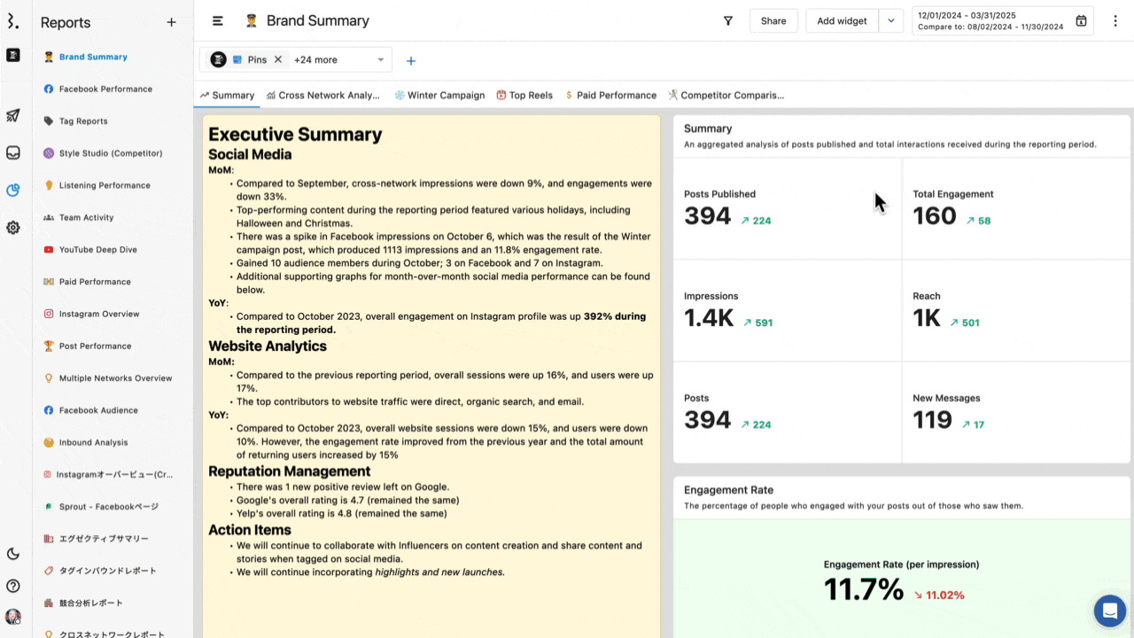 Statusbrewホームからレポートを開き、左側のパネルからダウンロードしたいレポートを選択します。