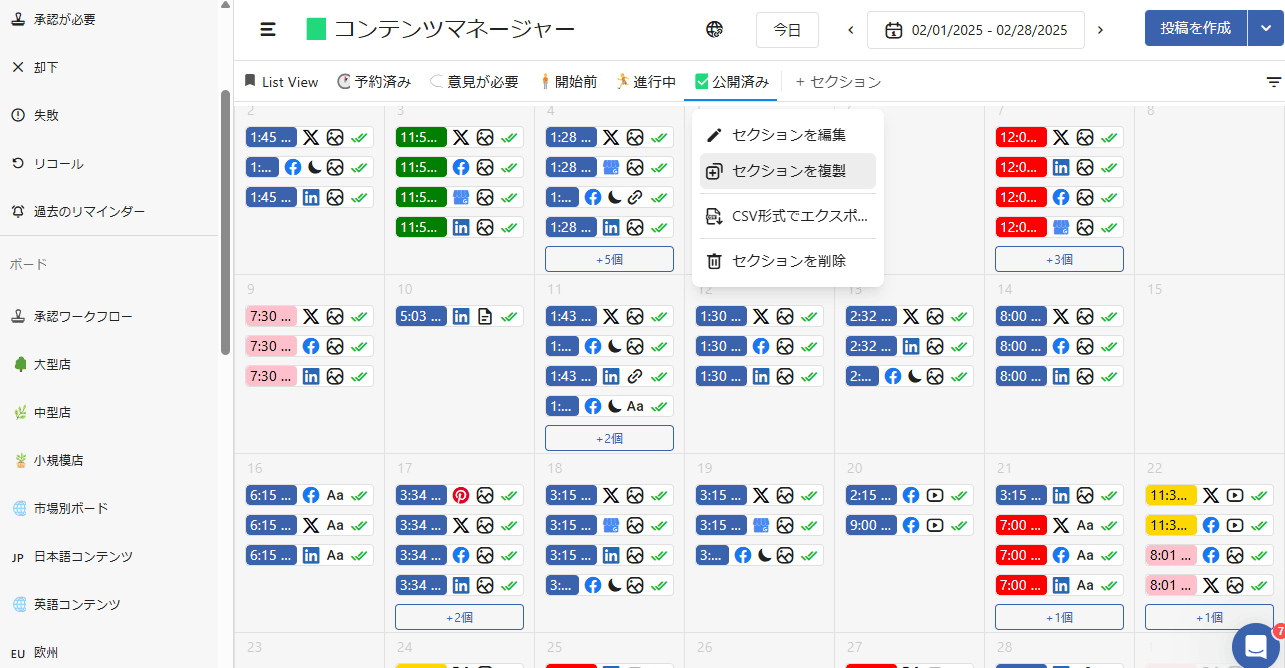 公開済みの投稿はいつの間にか膨大な件数になってしまうものです。是非プランナーボードのカスタマイズ性を武器に、目的に合ったCSVデータを入手してパフォーマンスの強化に役立ててください。