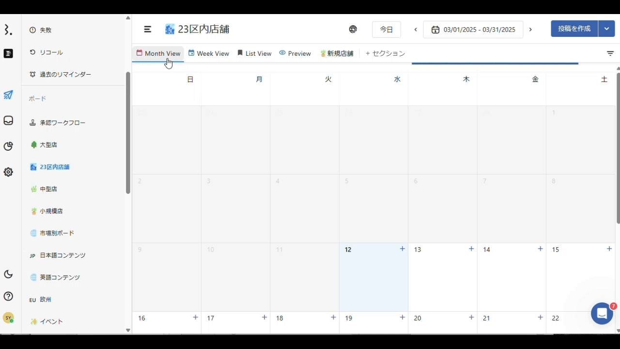 プランナーのサイドメニューより、確認したいボードを選択します。