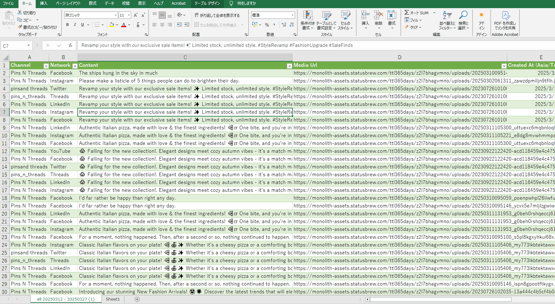 Statusbrewでは、これまで投稿した内容をCSV形式で一括ダウンロードすることが可能です。コンテンツ戦略やチームの業務マネジメントの見直しに活用しましょう。