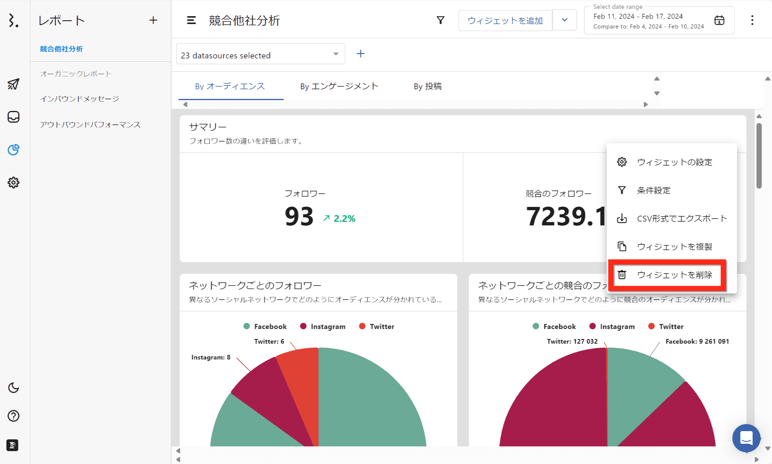 レポート内の左側のパネルから、削除したいウィジェットがあるレポートをクリックして開きます。