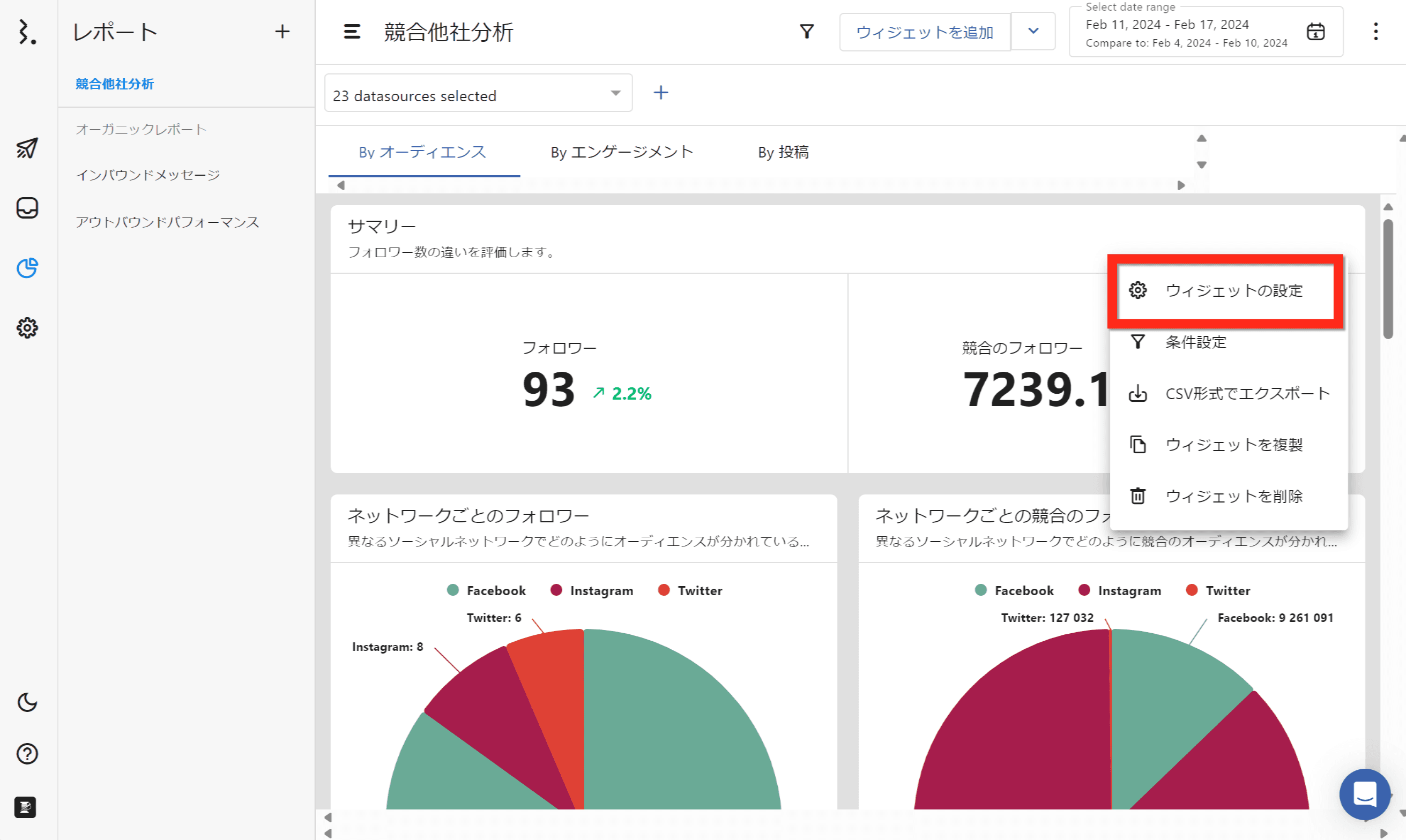 レポート内の左側のパネルから、編集したいウィジェットがあるレポートをクリックして開きます。