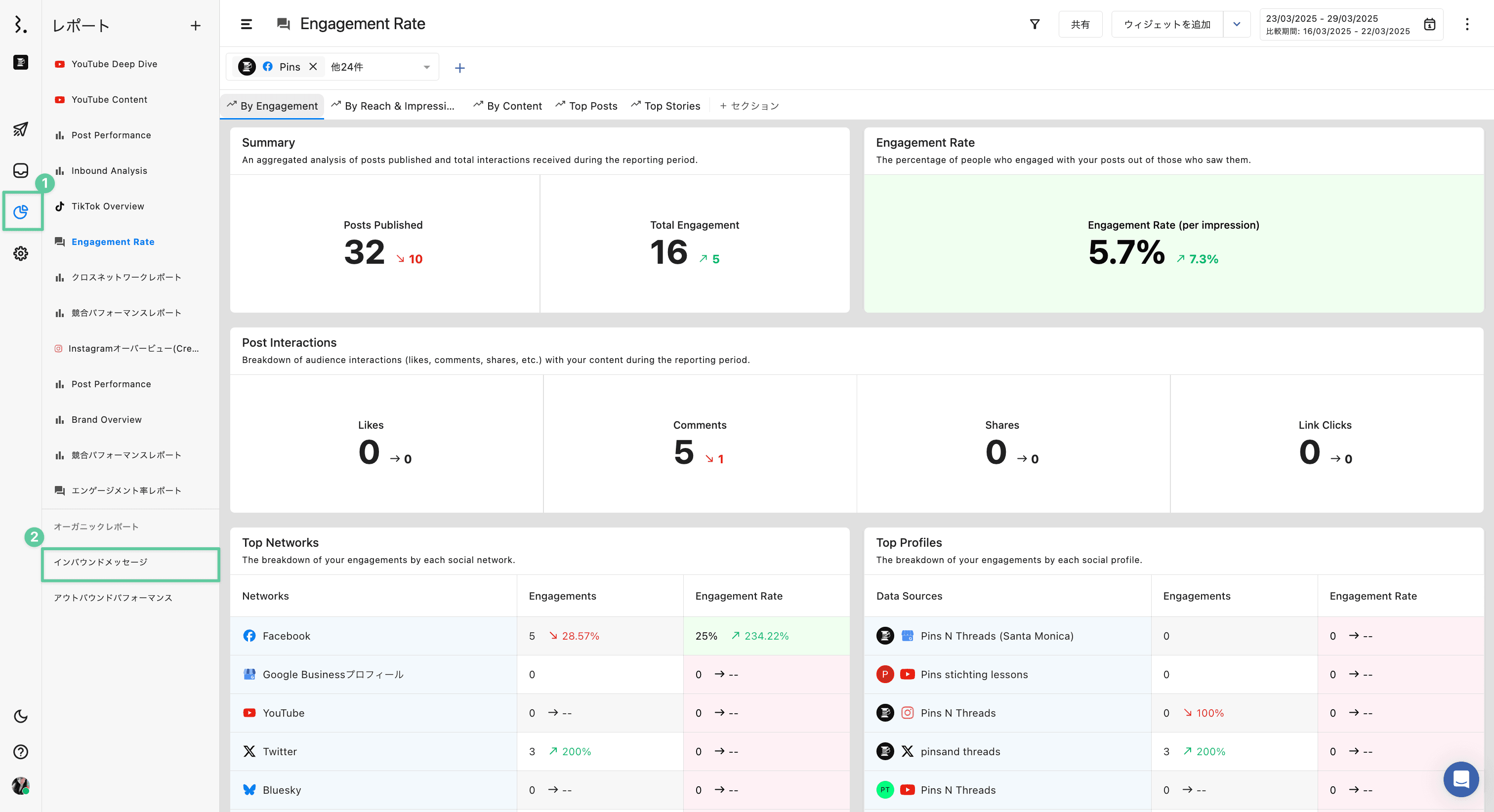 左側に表示されるレポートのセクションから、インバウンドメッセージをクリックします。