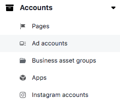 2.アカウント(Accounts)をクリックしてください。>左側のナビゲーションから広告アカウント(Ad Accounts)を選択してください。