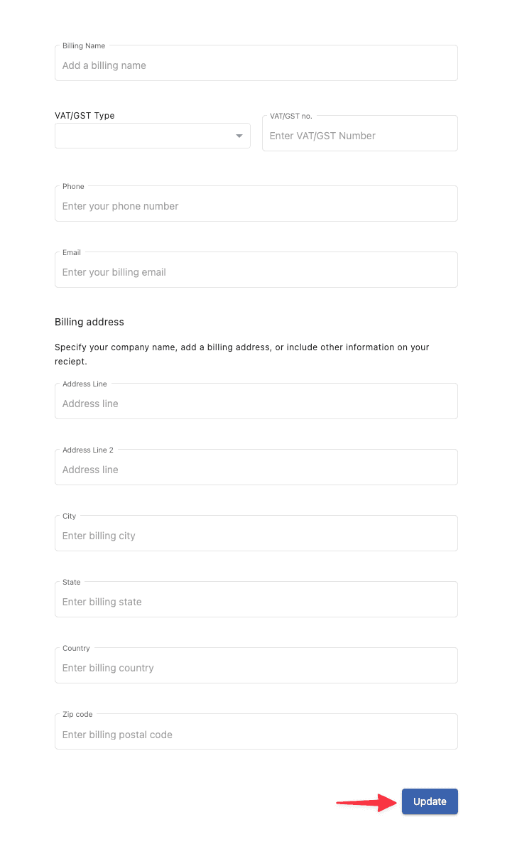 パートナー サイトStripeにリダイレクトされ、完全な請求詳細を確認できます。