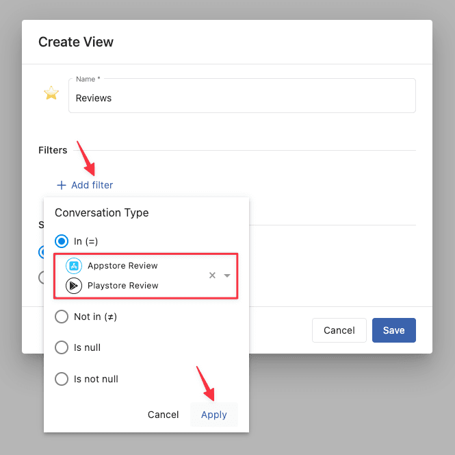 エンゲージ内で、Play StoreとApp Storeの全てのレビューを表示するには、