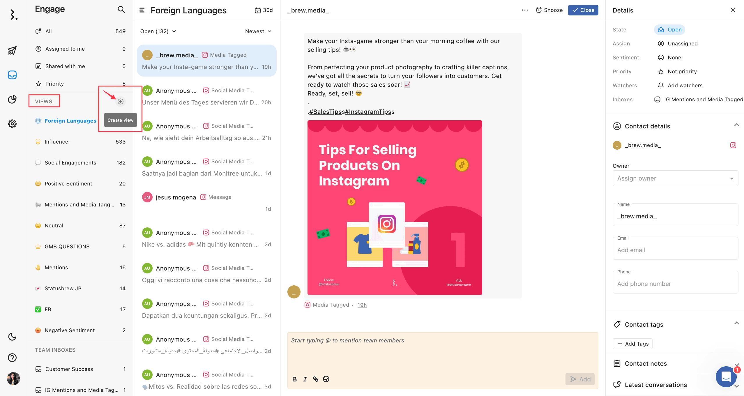 Statusbrewダッシュボードから、エンゲージを開きます。
