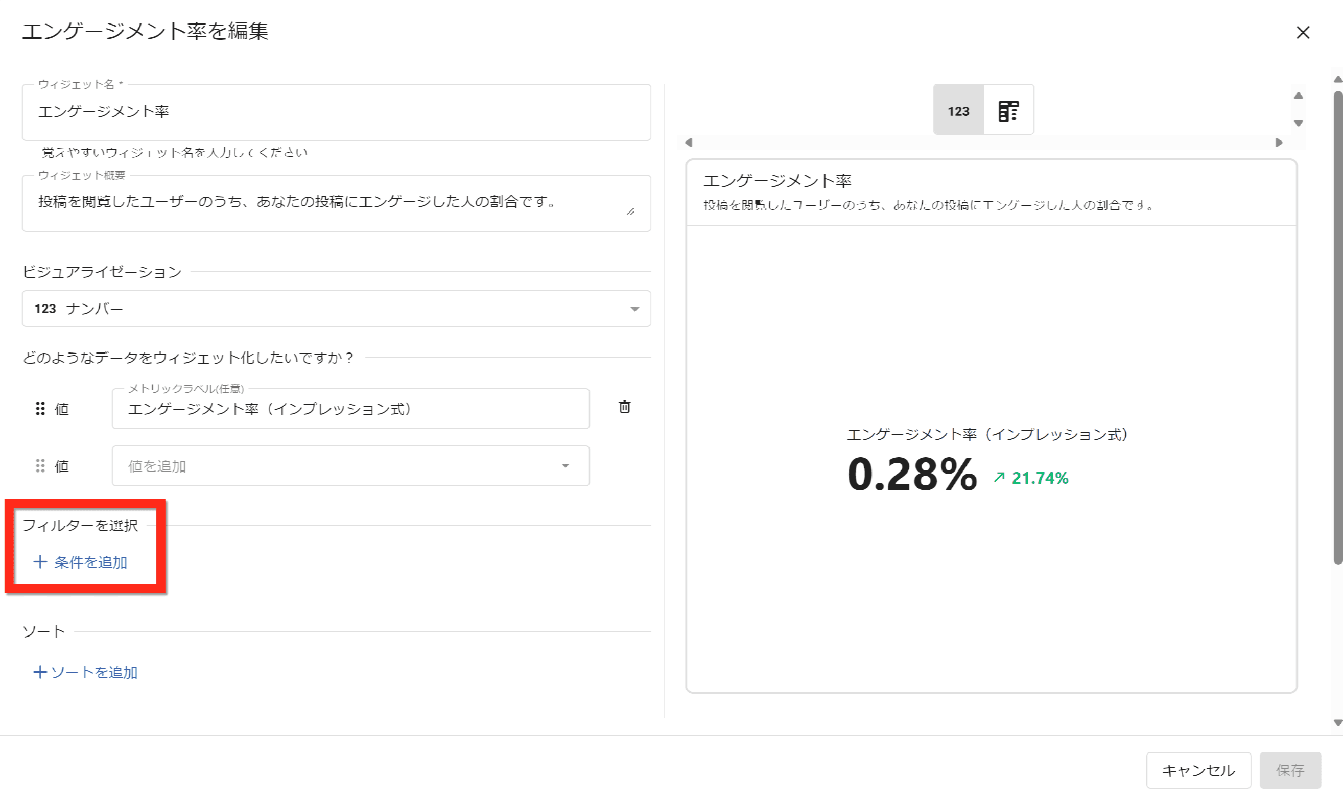 フィルターを選択するセクションで、条件を追加をクリックします。