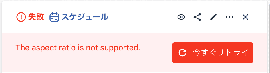 画像や動画のアスペクト比が許容範囲内であれば、投稿は自動的に公開されます。画像や動画のアスペクト比が許容範囲外の場合、投稿はリマインダーとしてスケジューリングされます。アスペクト比を調整してから、画像や動画を再アップロードすることもできます。