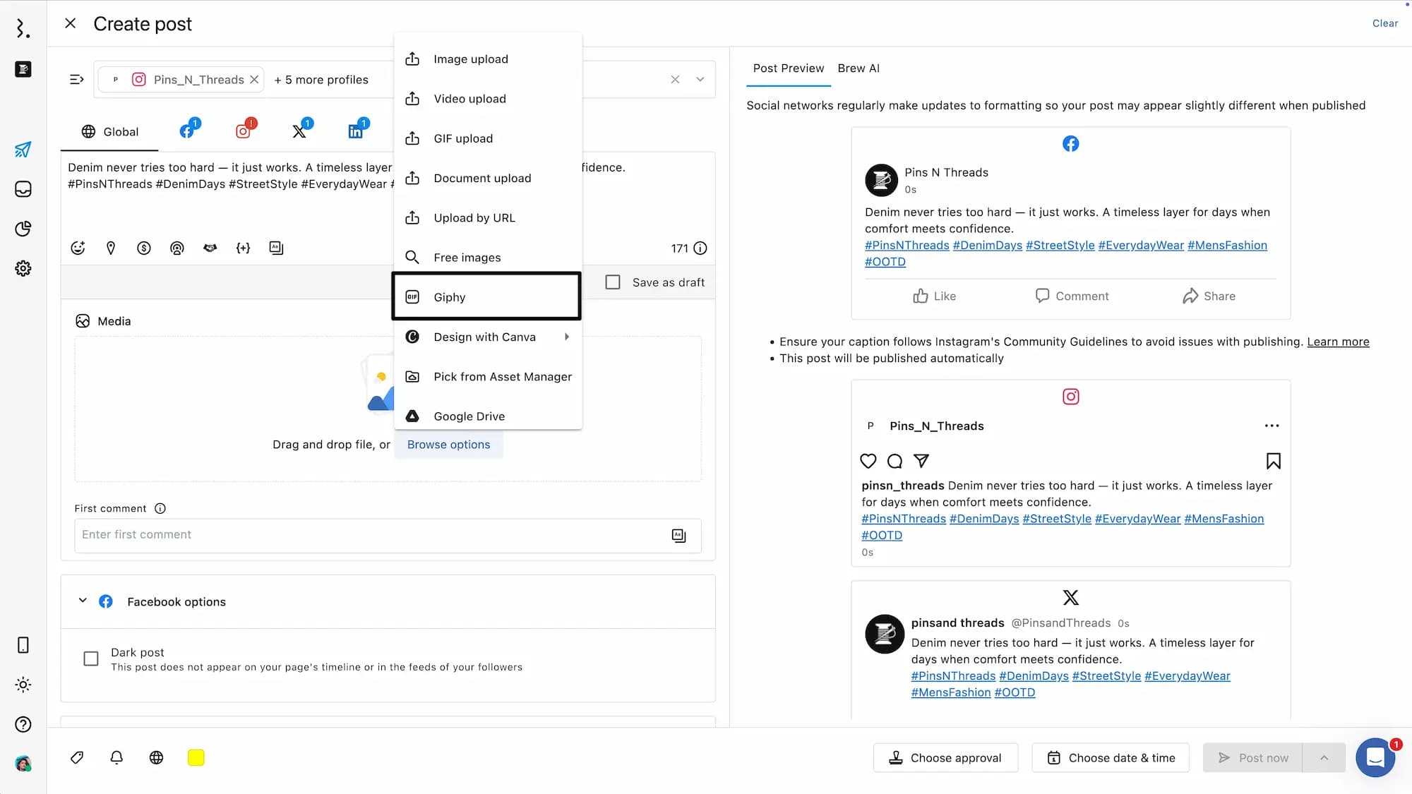 Giphyは世界初の、そして最大のGIF専門のプラットフォームです。StatusbrewのGiphyインテグレーションによって、コンポーズ画面で投稿を作成中に直接GiphyからGIFを追加したり、エンゲージ画面で顧客との会話のやりとりでGIFを使うことができます。