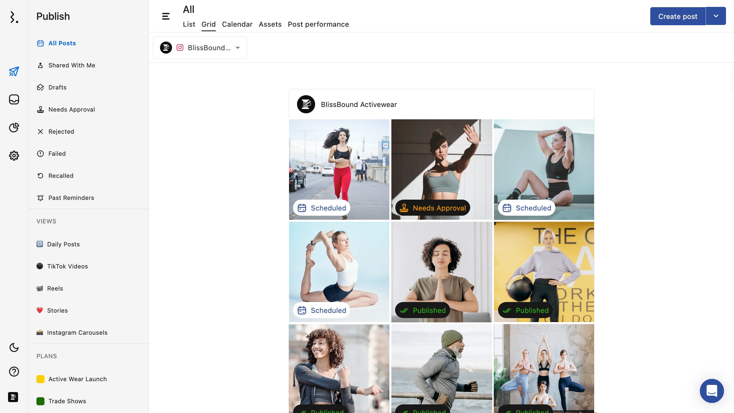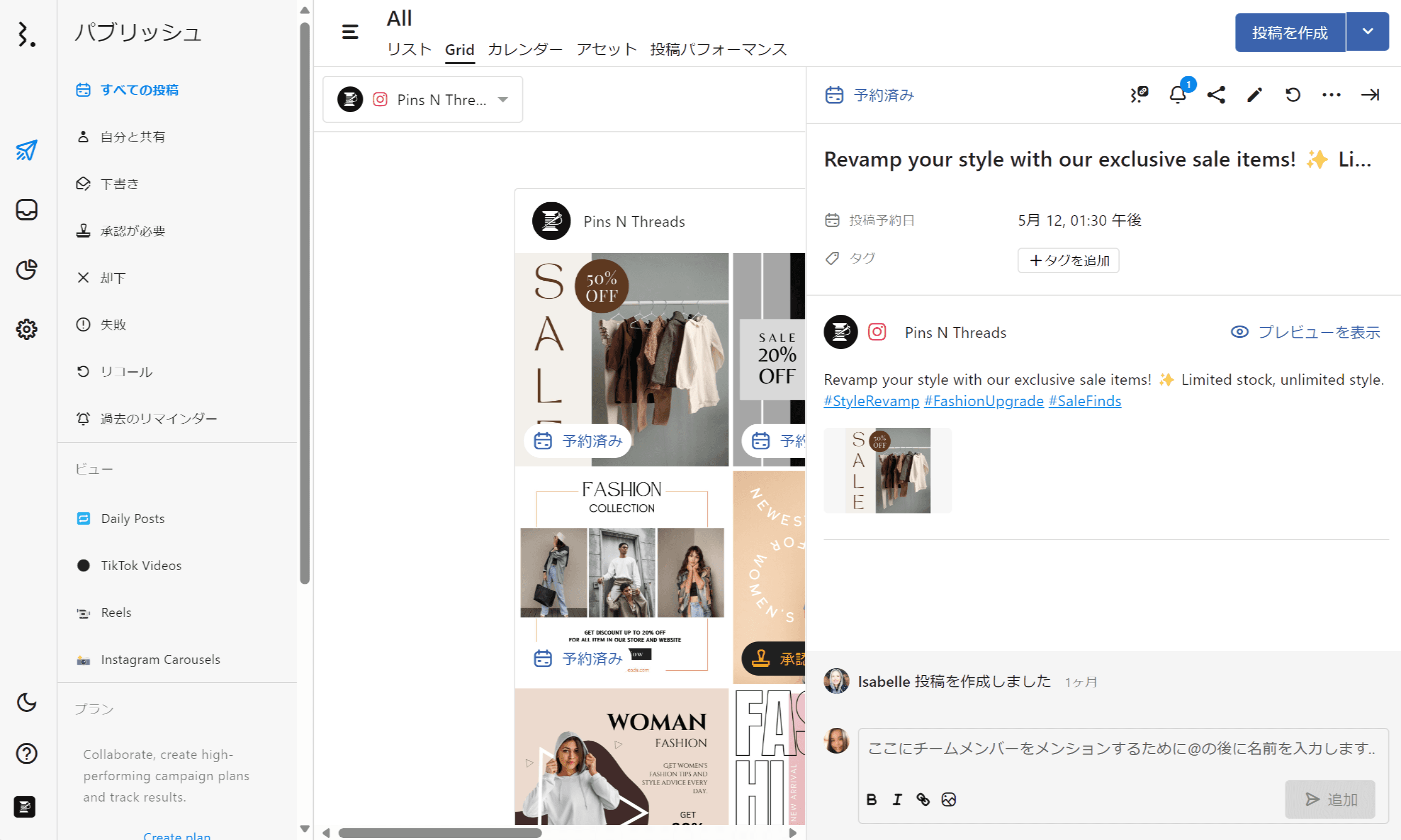 グリッド(Grid)ビューから、投稿を手直しすることが可能です!プロファイルレイアウト全体を確認して、メディアやキャプションを編集しましょう。グリッドビューでは、予約済みの投稿(公開前)を編集することができます。