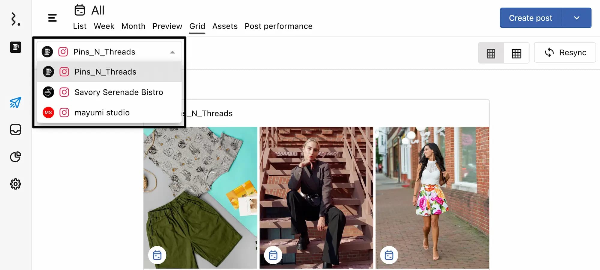 グリッドビューはStatusbrewに接続されているInstagramプロファイルでご利用いただけます。