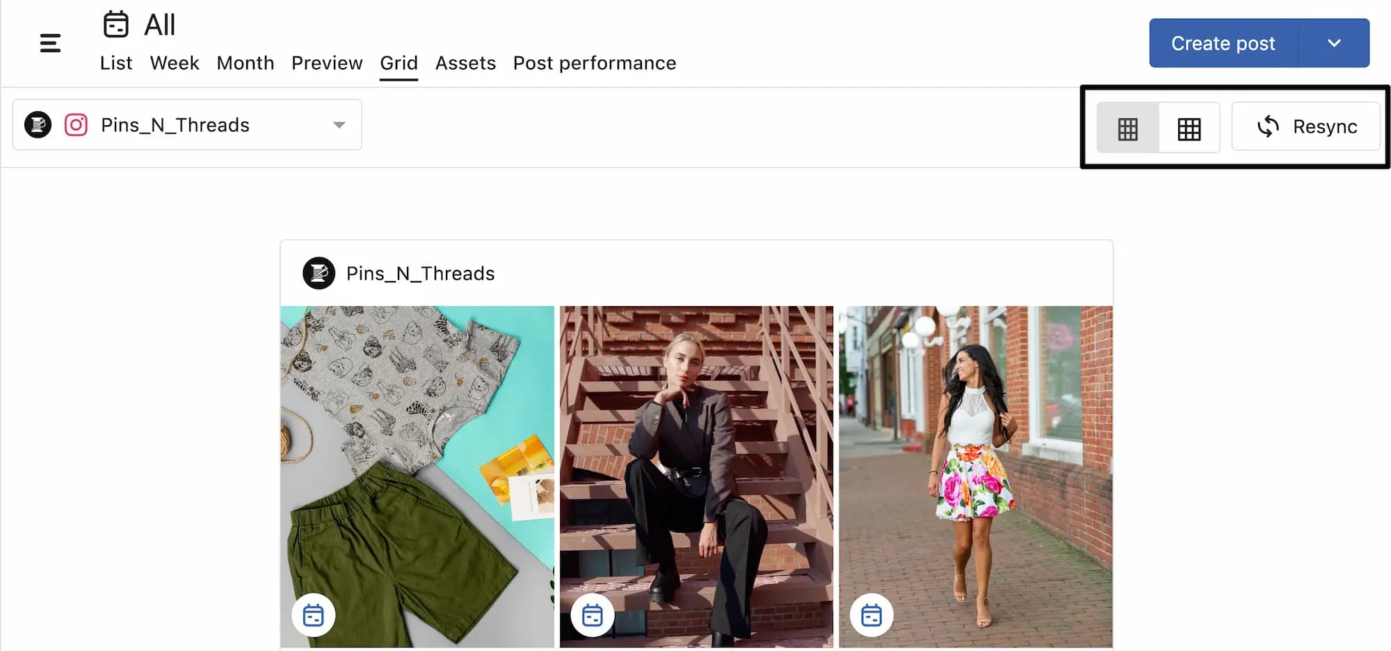 サイドバーで プランナー > すべての投稿 > グリッドを選択します。