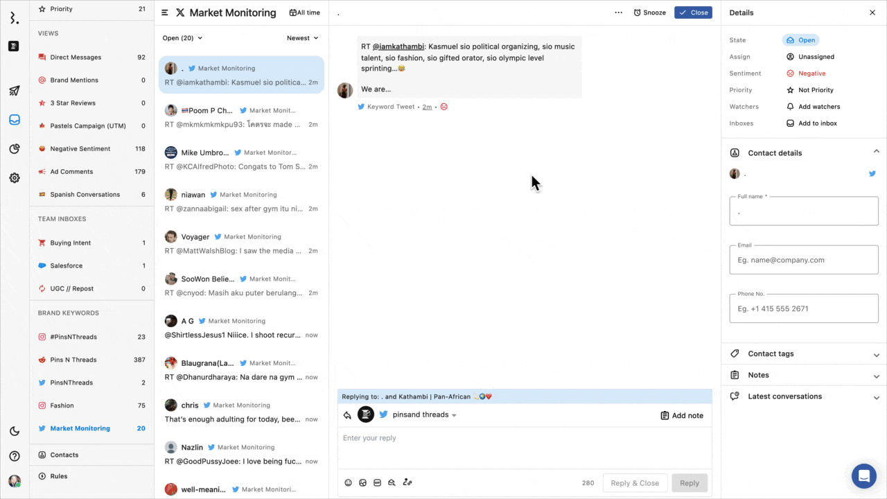 実際には、ハッシュタグの監視をチーム受信箱と組み合わせ、コンテンツのキュレーションや管理に活用することが可能です。