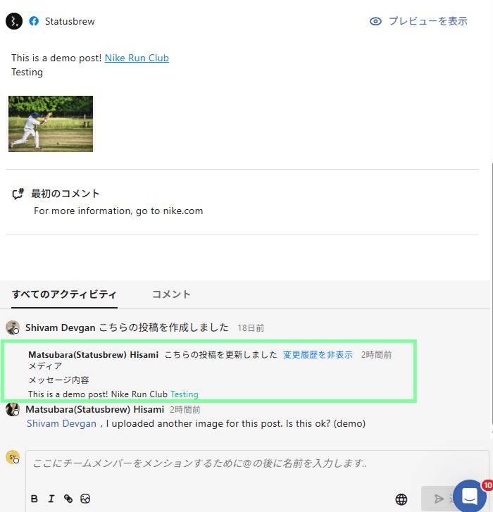ことです。Statusbrewのプランナーの共有ノート機能は、Statusbrewのアカウントを持つユーザーから、アカウントを持たない外部ユーザーまで投稿のフィードバックを公開し、コミュニケーションを可能にします。