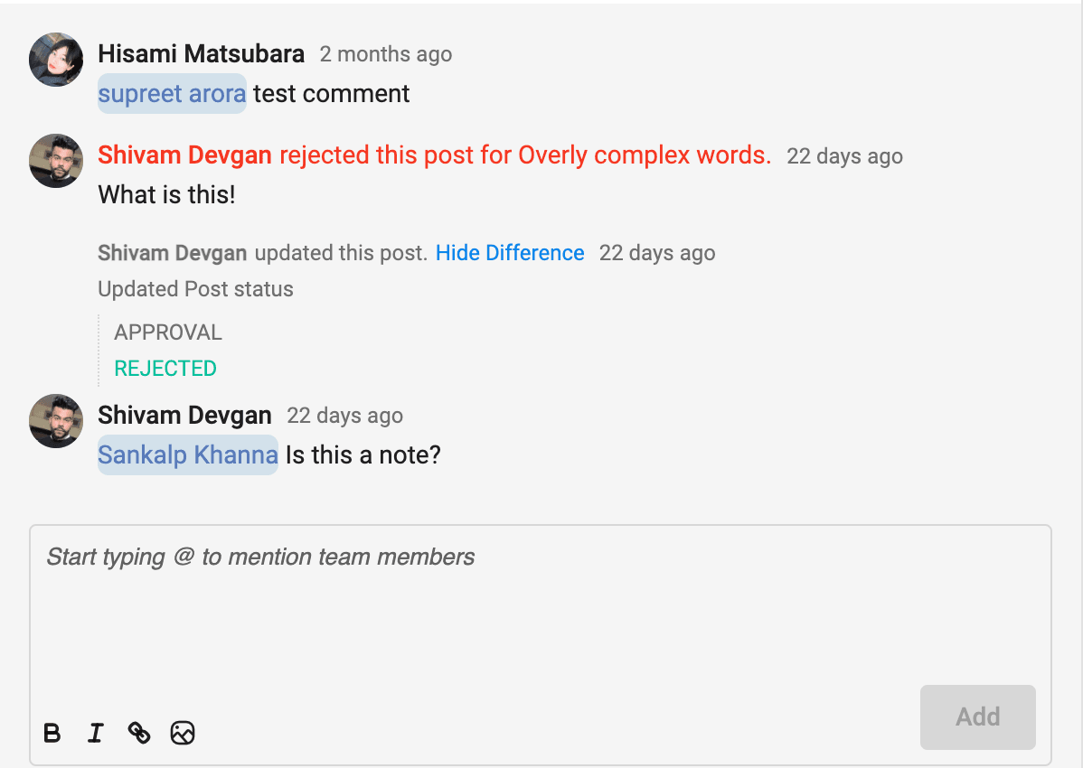 作成した投稿やキャンペーンの対するアイディアやフィードバックを交換できる