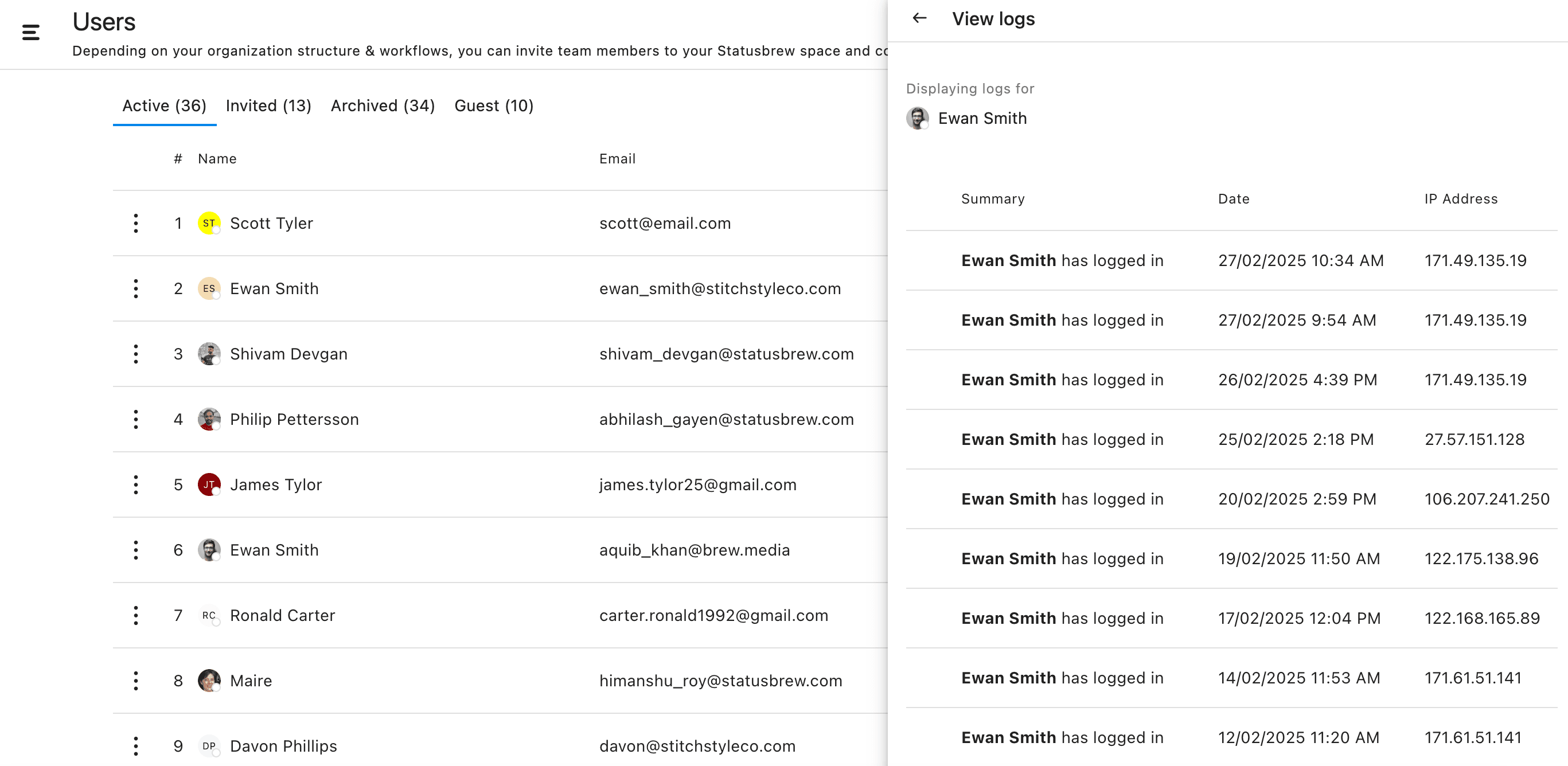 組織の構造やワークフローに応じてStatusbrewのスペースにチームメンバーを招待し、彼らのアクセス権限を設定することができます。