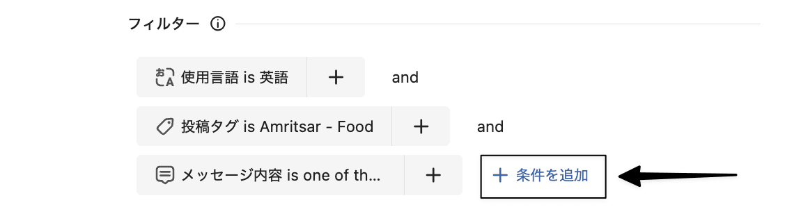 会話タイプ、センチメント、投稿タグなどの条件を追加することで、さらに精密に絞り込みが可能です。