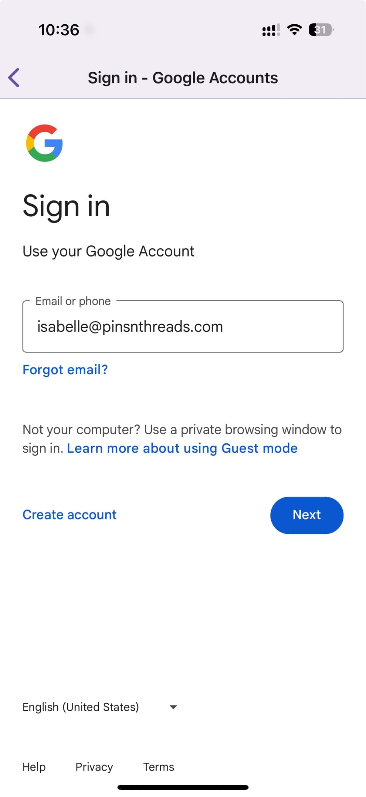 Googloogleアカウントのメールアドレスとパスワードでサインインする場合