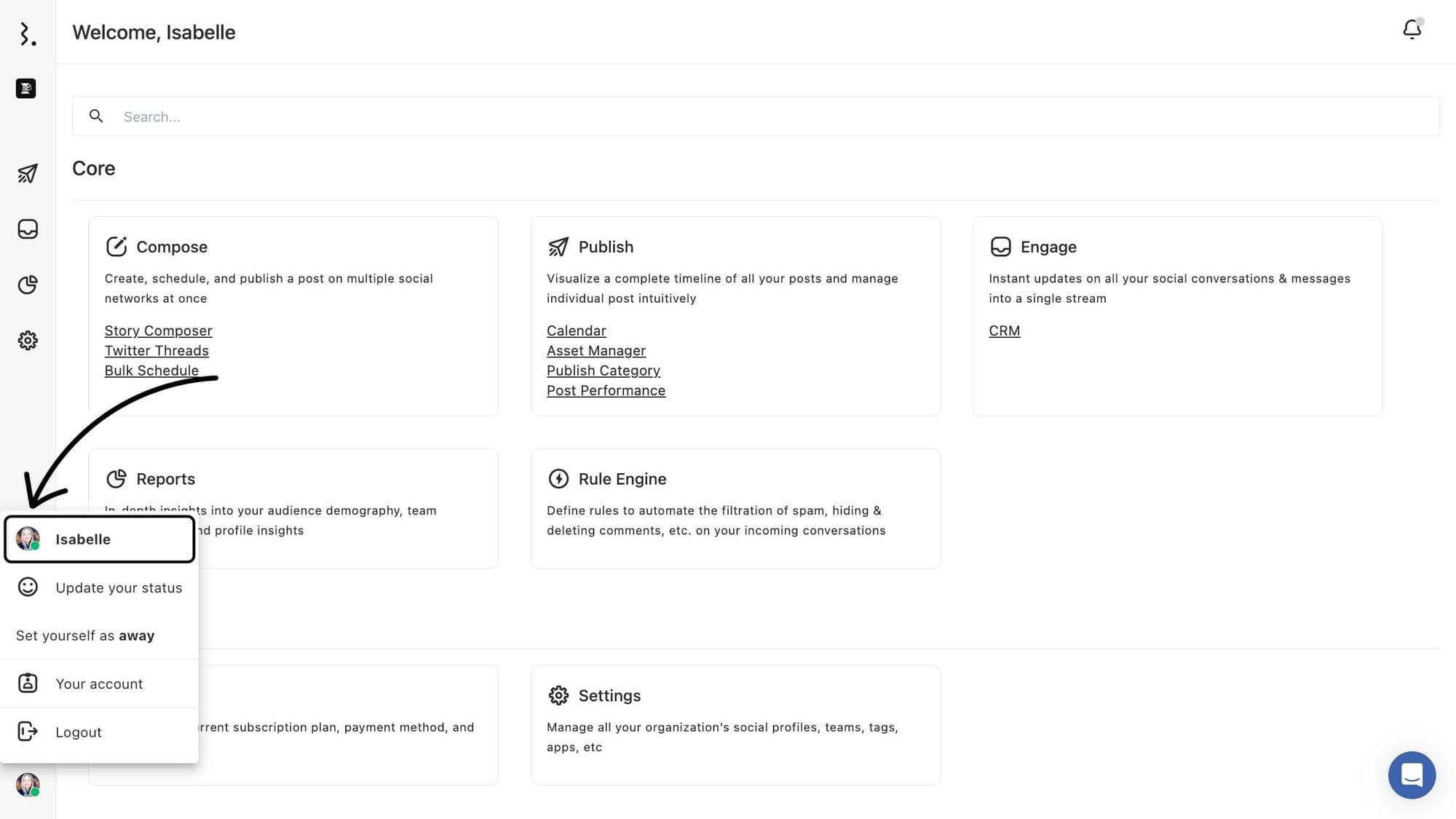 Statusbrewで離席中に設定してタブを閉じた後、再度手動で自分のステータスをアクティブに設定するまで、オフラインまたは離席中のままになります。これを行うには、プロフィールアイコンをクリックし、自分をアクティブに設定するオプションを選択します。これは、積極的に作業したりメッセージに返信したりせずに、ソーシャルメディアの更新を確認するだけの場合に便利です。