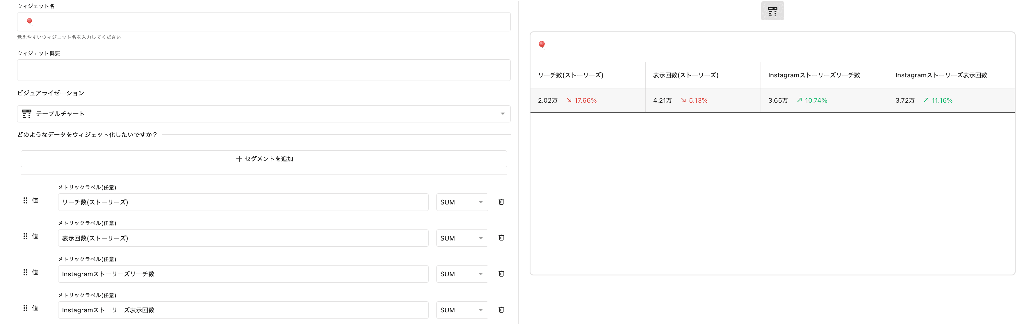 例:Instagramストーリーズリーチ数(ローカル)、インタラクション総数(自社定義)など