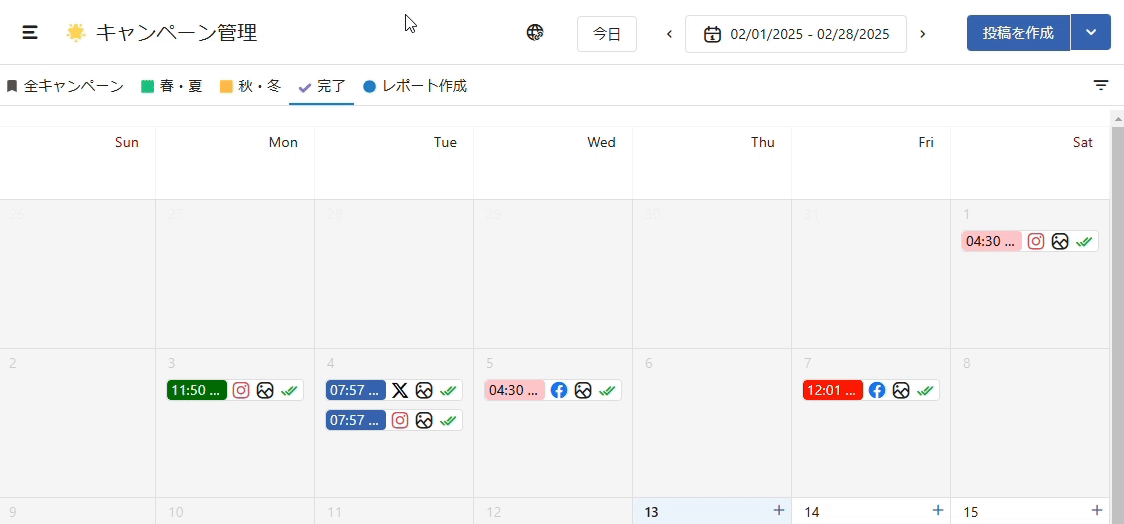 こうしたフィルターは、月間または週間のカレンダービュー、リストビュー、プレビュー、Instagramの場合はグリッドビューとすべてのプランナーボードビューに適用されます。