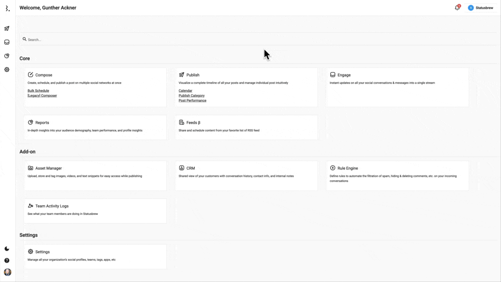 Statusbrewでは新しいグループエンティティとして投稿グループを作りました。投稿グループとは、複数のプロファイルへの予約投稿を一括で作成した際、それら複数の投稿をグループ化したものです。