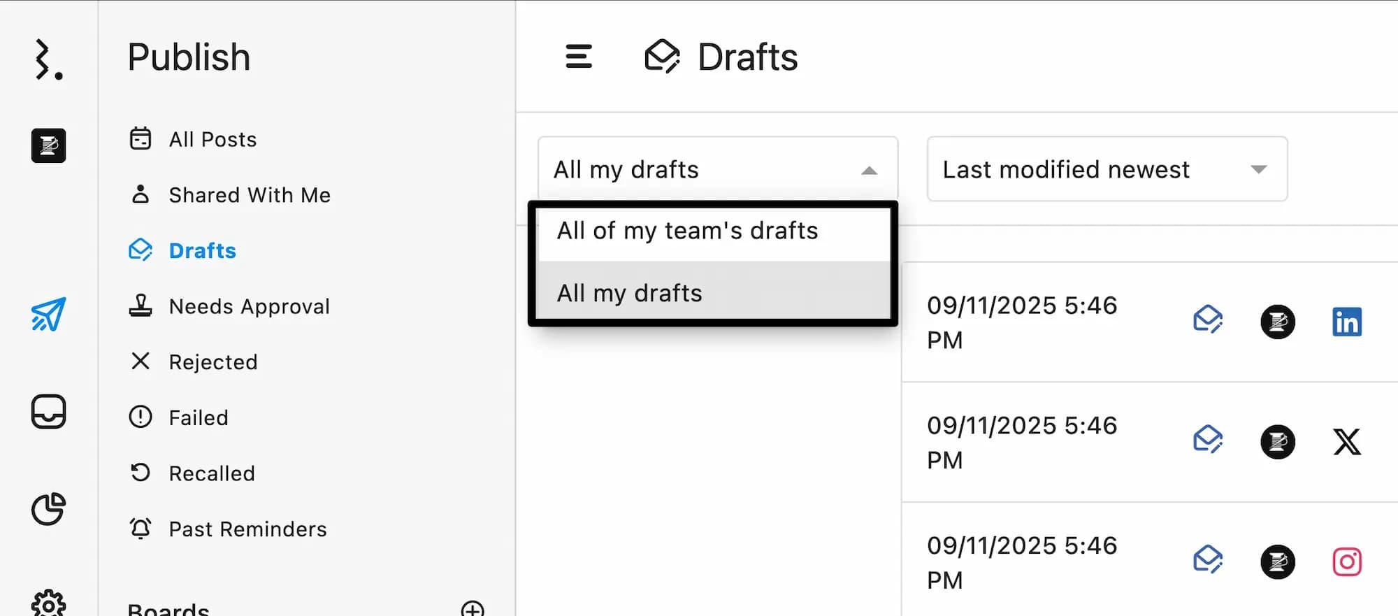 また、コンテンツカレンダーから直接下書きを確認することもできます。