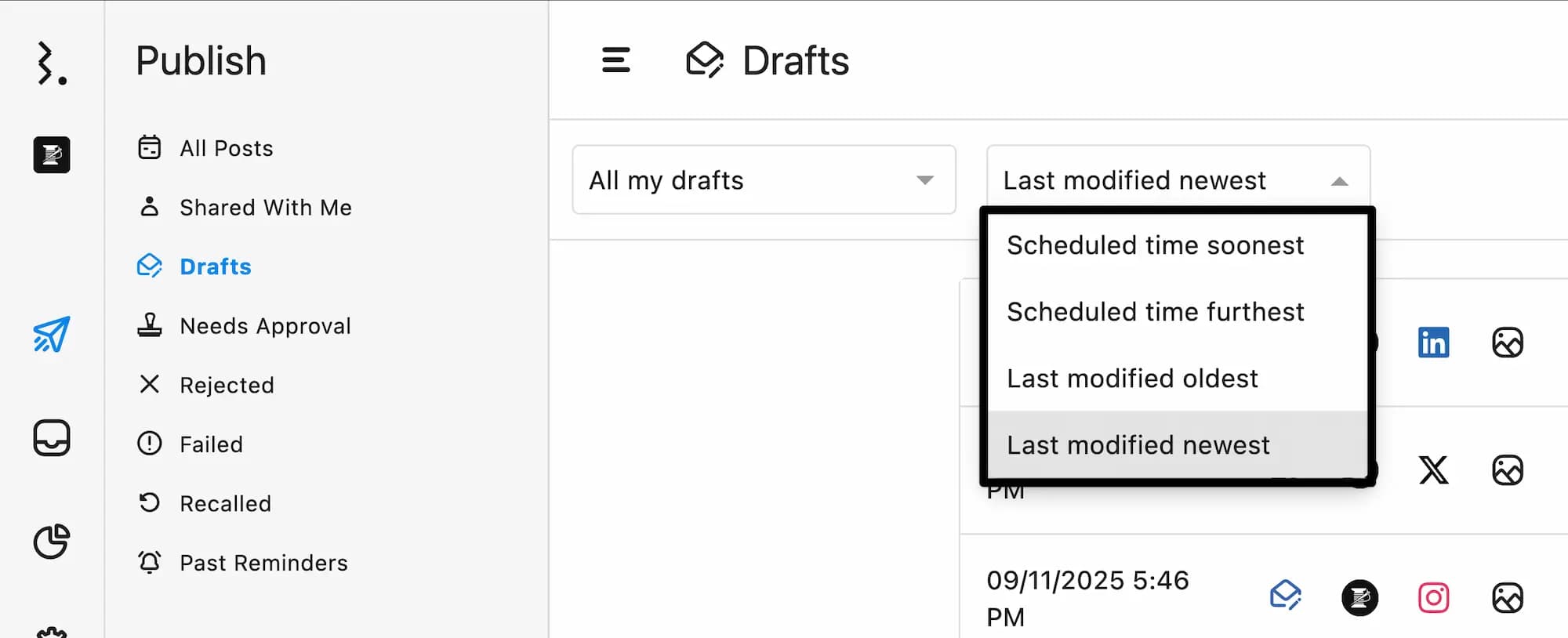 デフォルトでは最も新しい最終更新日順に下書きが表示されています。最近編集した下書きをリストのトップにおくことで、最新の下書きに素早くアクセスして作業を続けることができます。