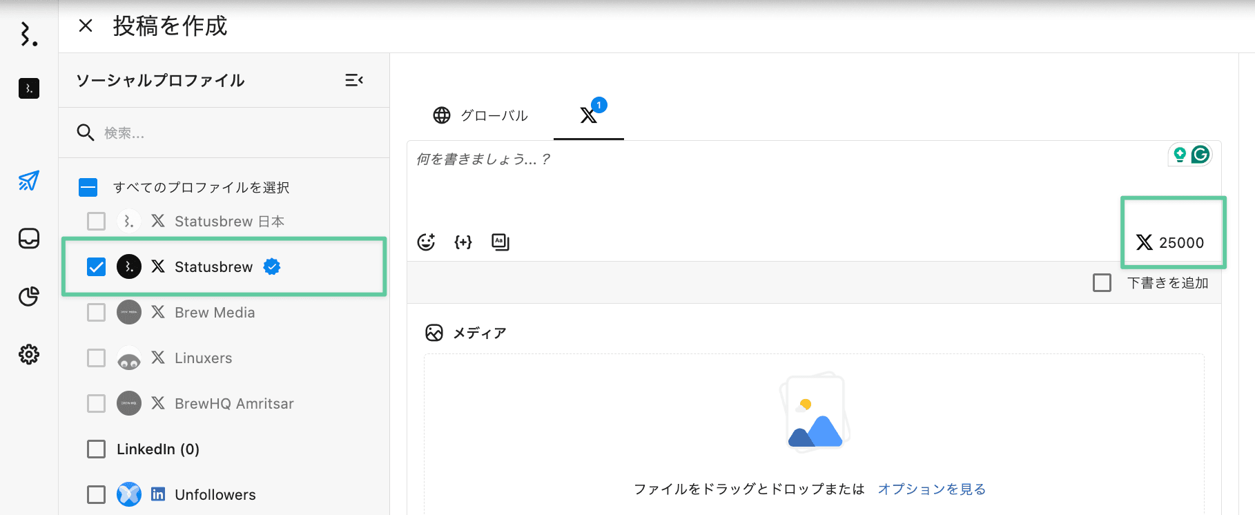 Statusbrewでは、Twitter()への長文(最大で全角12,500文字(半角で25,000文字))の投稿を予約することができます。