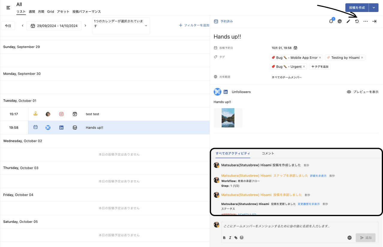 Statusbrewのリコール機能を使用することで投稿を一時的に取り下げ、必要な編集を行うことができます。以下は、Recall機能の使用方法と利点です。