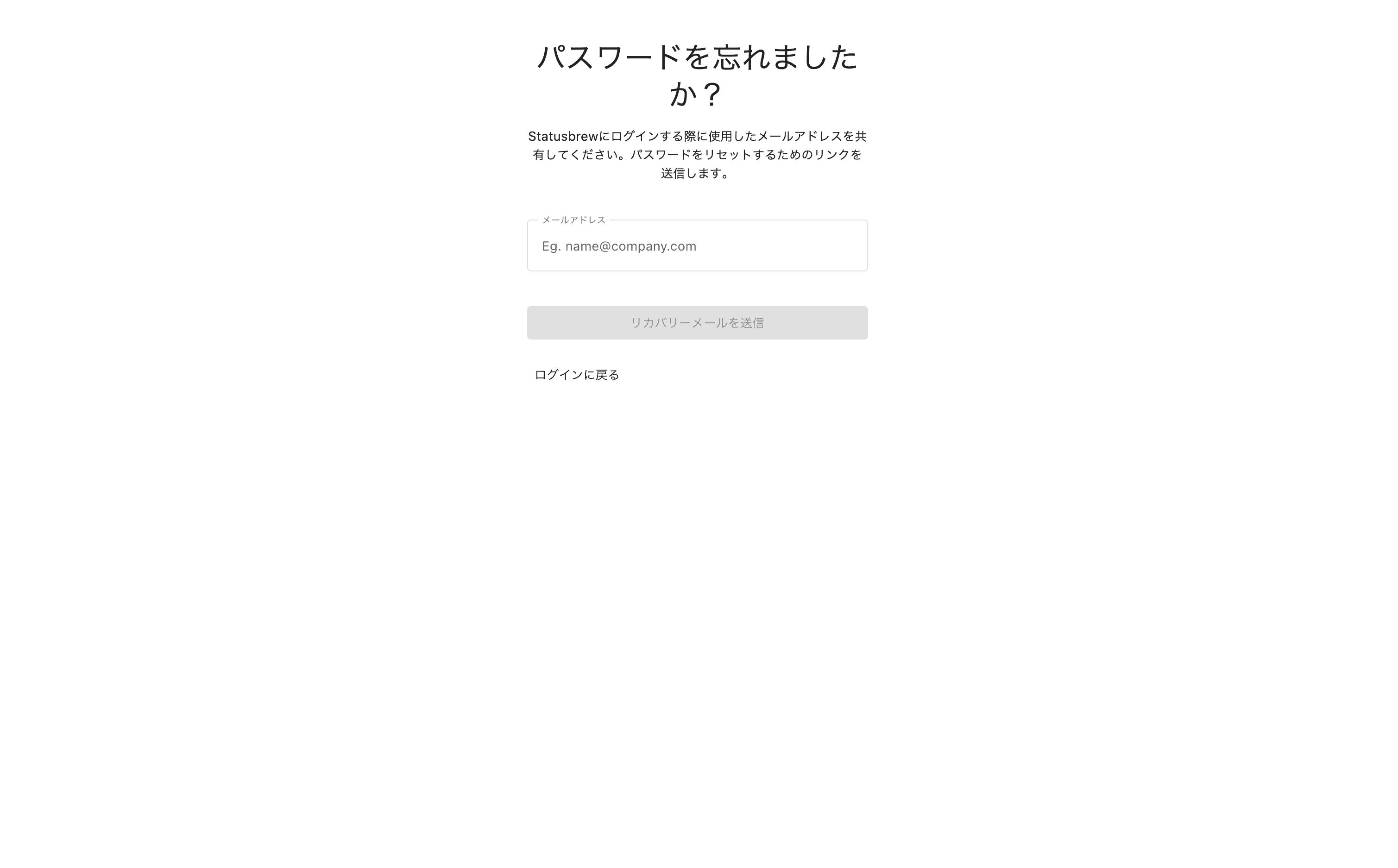 1. https://space.statusbrew.com/reset-password にアクセスします。パスワードを設定するためのリカバリーリンクを送信するので、あなたが招待されたメールアドレスを入力します。