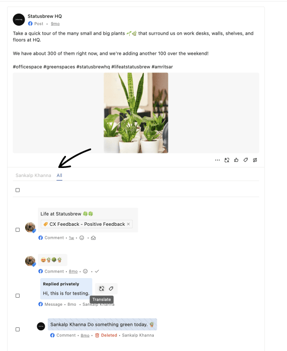 StatusbrewではFacebookのコメント以外に多くの種類のエンゲージメントを同期、管理することができます。