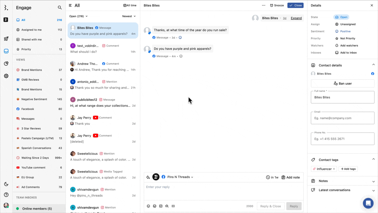 返信したいFacebookのメッセージを開きます。チーム受信箱またはビューから該当のメッセージを探すと早く見つかるでしょう。