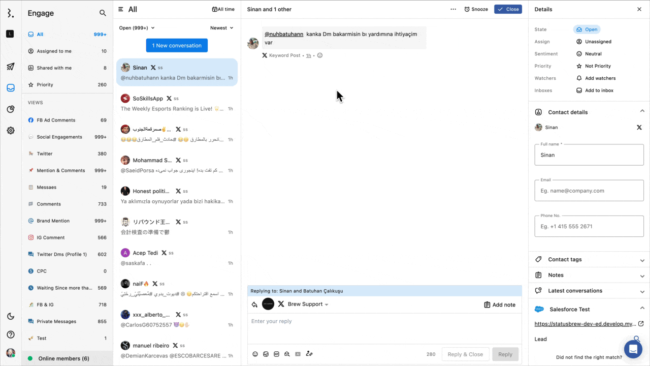 Statusbrewのエンゲージ機能を使えば、1つのプラットフォームで複数のThreadsアカウントのコメントを管理し返信することが可能です。