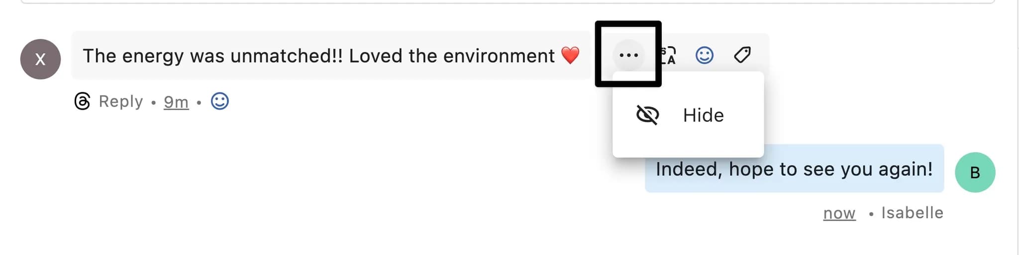 Threadsのコメントへ返信して、更に多くのエンゲージメントやインタラクションを獲得しましょう。フォロワーに彼らのアイディアを重要視していることを伝える機会にもなります。