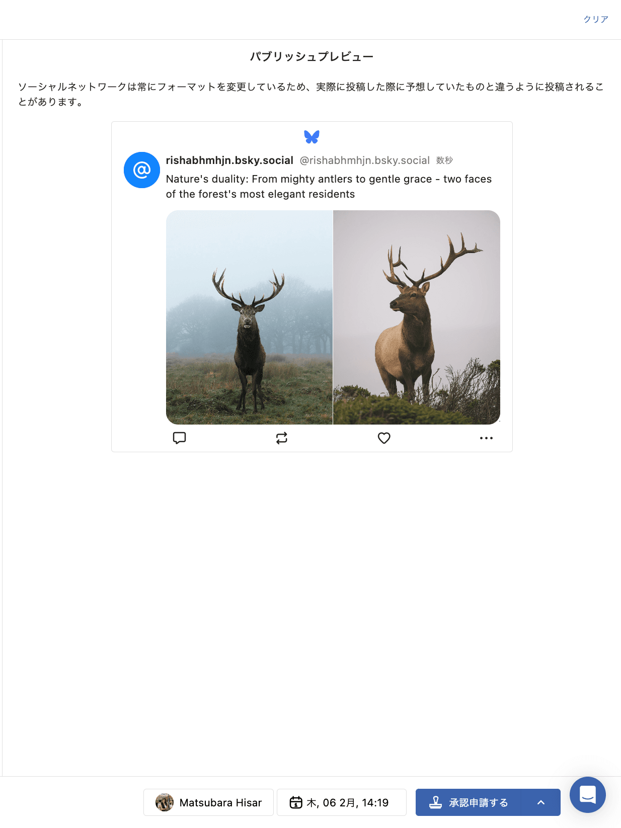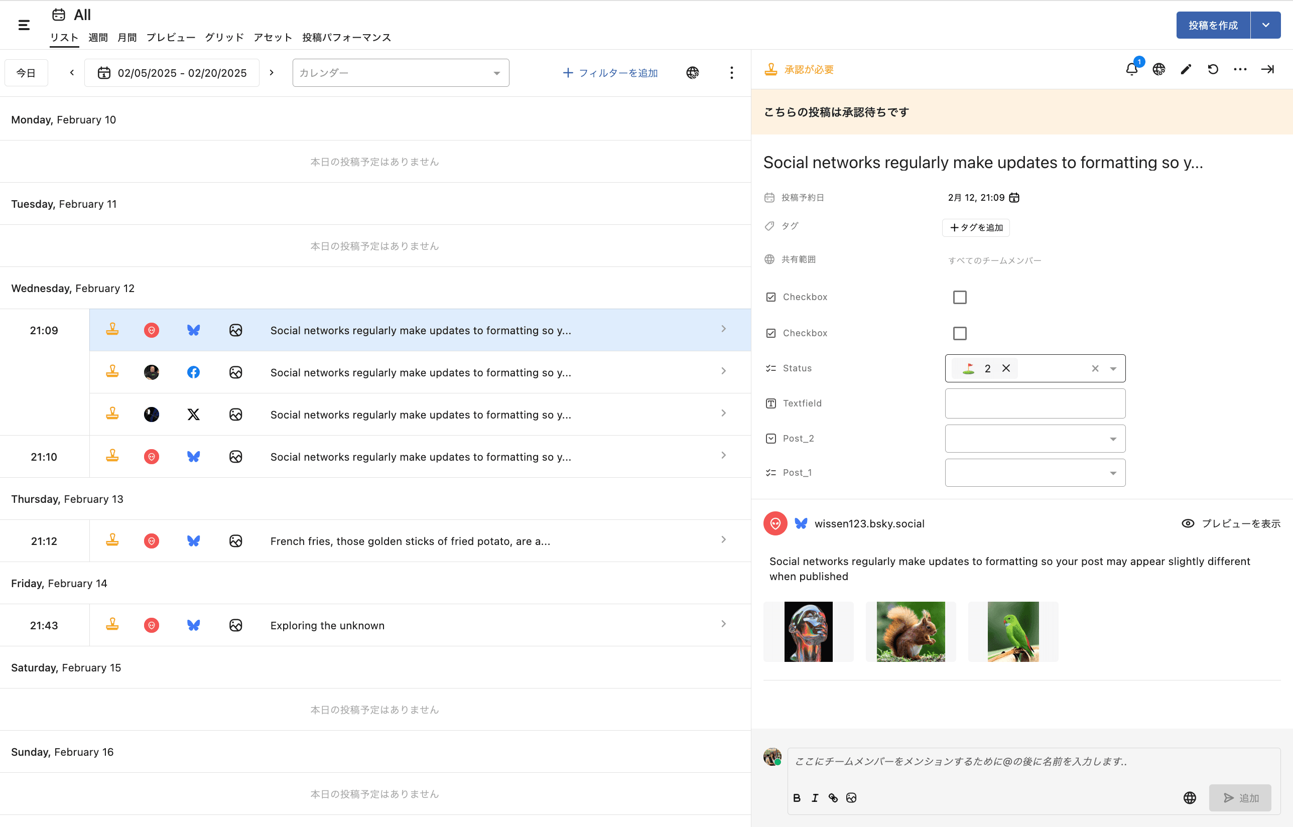 Blueskyアカウントの投稿を作成して公開しましょう。複数のBlueskyアカウントに投稿できるので時間を節約でき、今すぐ投稿することも、予約日時を指定して投稿することも可能です。