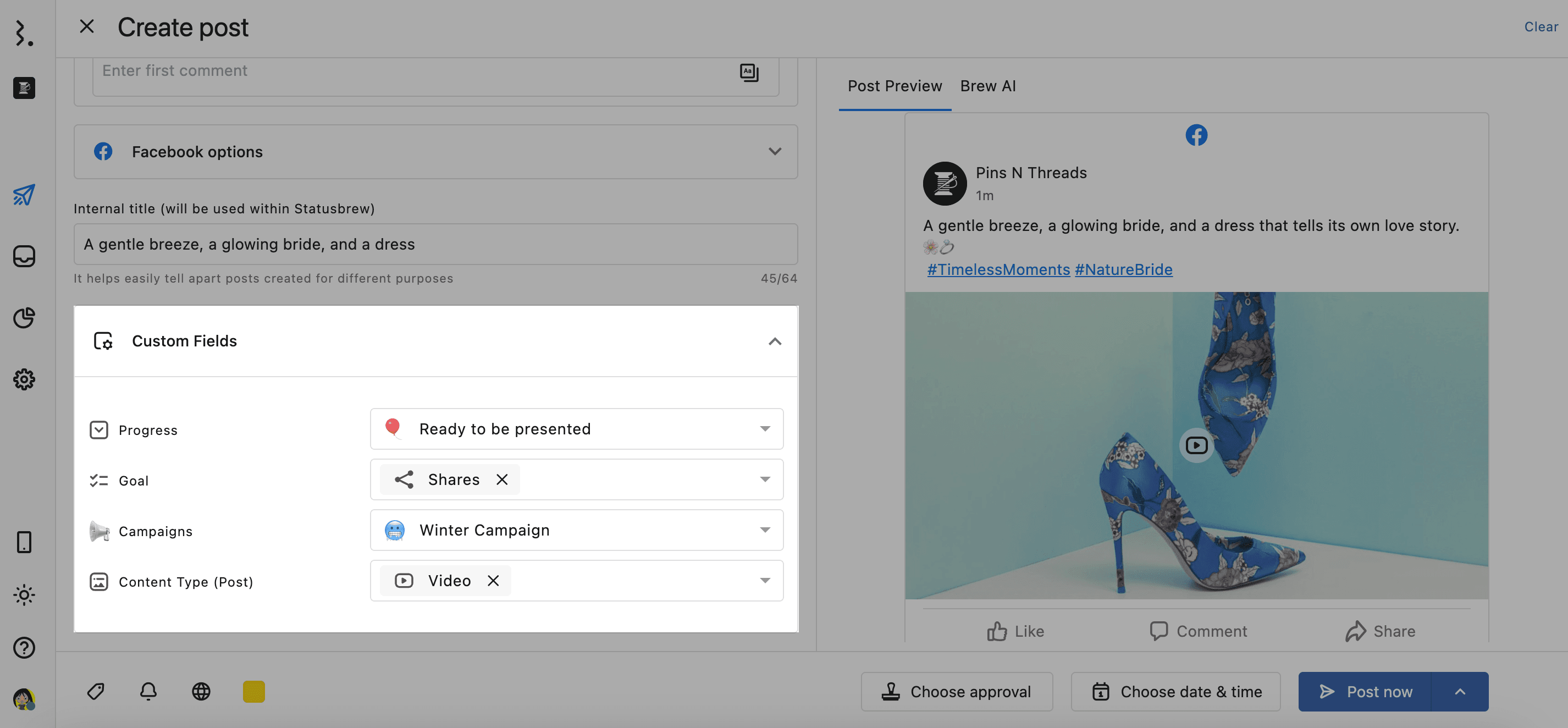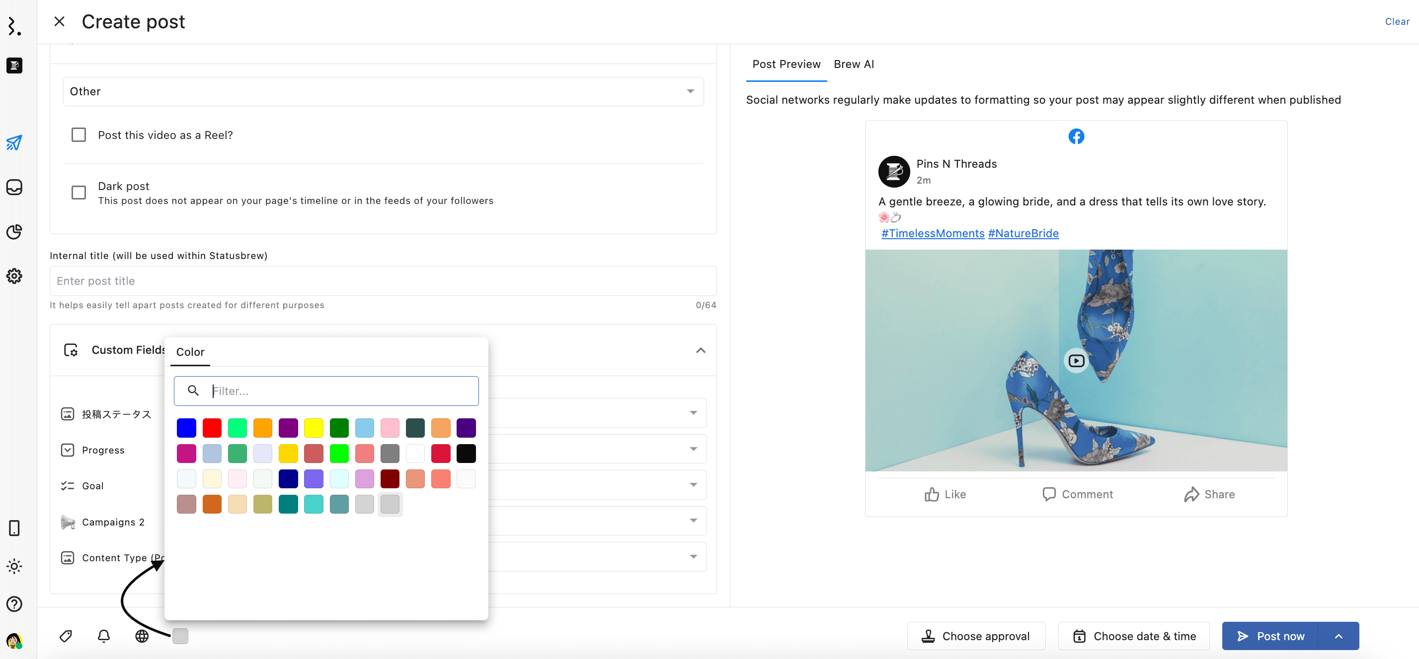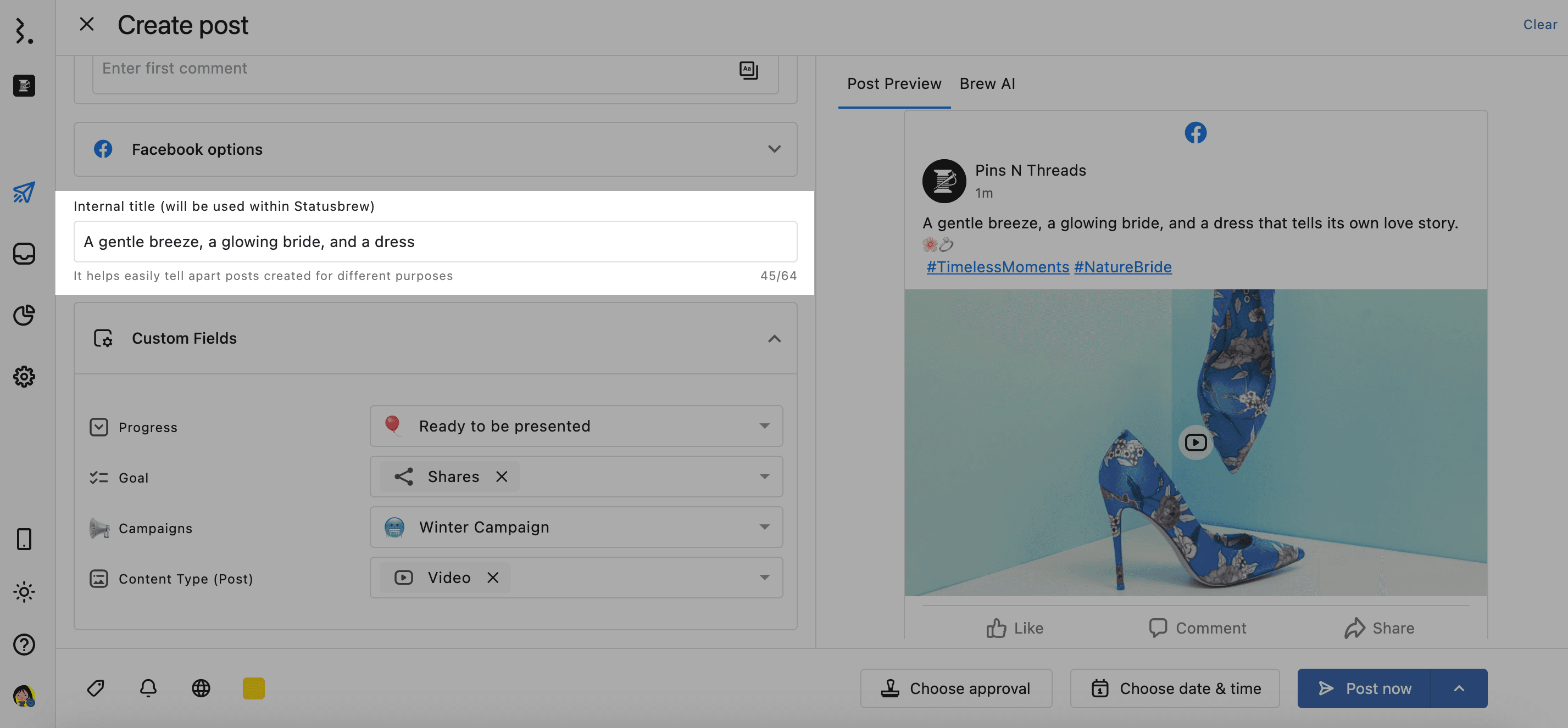 社内タイトルはStatusbrew内でのみ表示されるもので、キャンペーンや目的ごとに投稿を認識し、管理や追跡を容易にします。