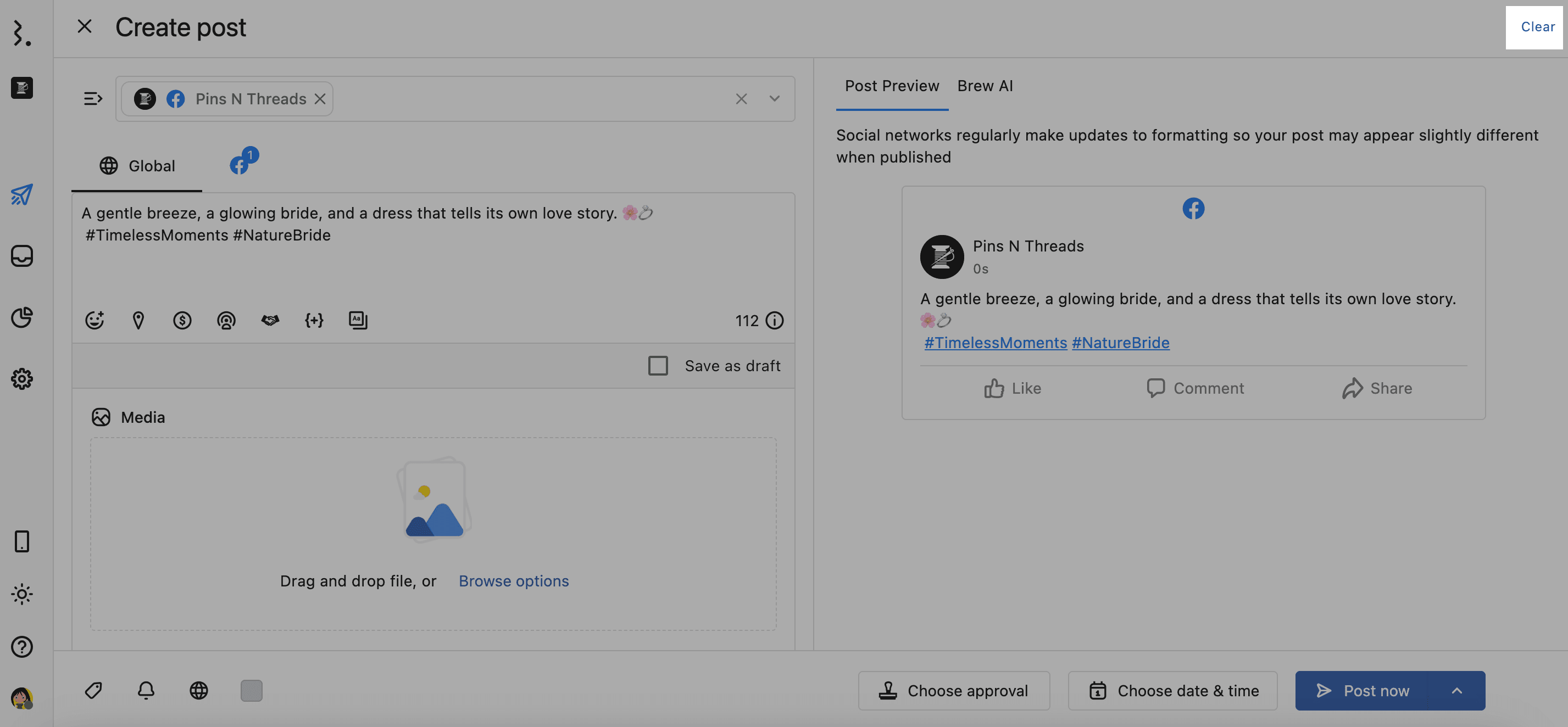 Brew AIは、AIによって投稿作成のスピードを強化し、戦略立案やクリエイティブな作業に時間を使うことを可能にします。