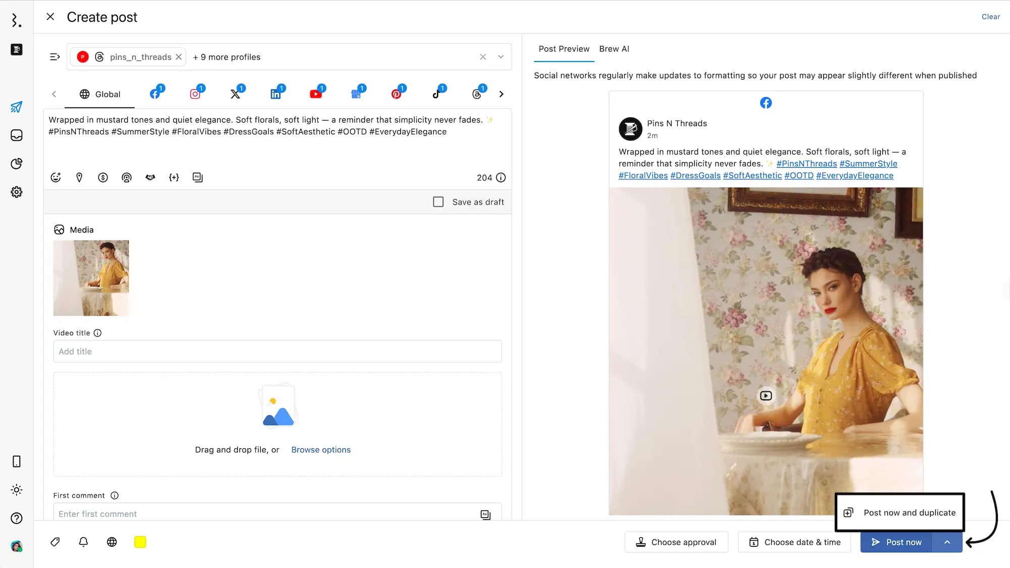 投稿が公開され、他のプロファイルやネットワーク用に編集するために、同じ投稿内容をコンポーズで開くことが可能になります。